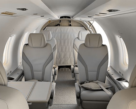 Single engine turbo prop equipped with a large pressurised cabin, the Pilatus PC-12 can comfortably accommodate 6 passengers.