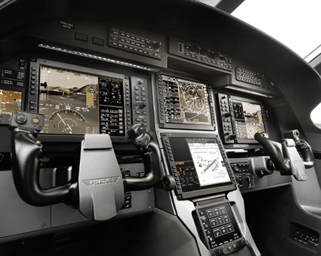 The cockpit is equipped with advanced avionics to ensure a safe flight.