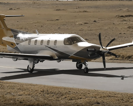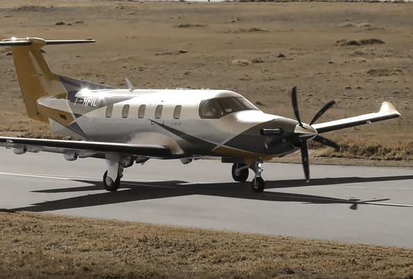 Single engine turbo prop equipped with a large pressurised cabin, the Pilatus PC-12 can comfortably accommodate 6 passengers.